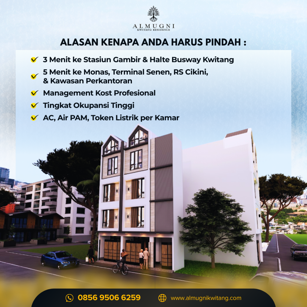 Almugni Kwitang Residence adalah kost eksklusif di pusat Jakarta, hanya beberapa menit dari Monas, Stasiun Gambir, dan Terminal Senen. Dengan desain Skandinavia minimalis, bangunan baru, dan kamar full furnished (AC, tempat tidur & lemari), properti ini menawarkan kenyamanan yang disukai penyewa. Berlokasi di area dekat permintaan sewa tinggi, investasi ini cocok untuk passive income, persiapan pensiun, maupun menambah aset produktif. Potensi sewa hingga Rp 3 juta per kamar, sementara nilai tanah di pusat kota terus naik, menjadikan Almugni Kwitang Residence sebagai investasi yang aman dan menguntungkan.